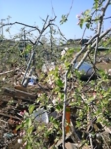 津波に負けず、残った栗の若木。