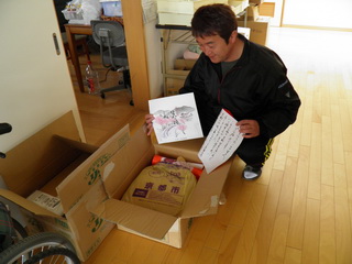 京都から送られてきたきな粉をあすなろホームに届けました。