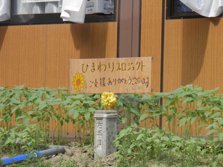 帰路、広田漁協の仮設事務所横に、ヒマワリプロジェクトの看板を発見。