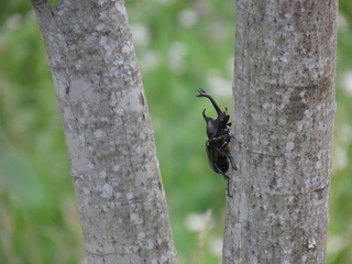 しかし、駐車場の横、法面に育っているクヌギの木(?)には、カブトムシがいます。すごいです。