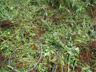 草刈りを継続します。学習能力が不足しているのか、ワイヤーに当たりまくります。