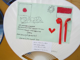 広田町出身東京板橋区在中のYさんが、ジャカルタ・ジャパン・ネットワークから、ウチワを陸前高田まで持ってきてくれました。