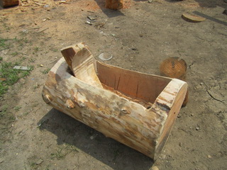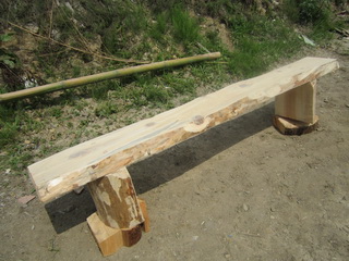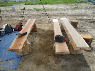 流木ベンチです。現場で、板に製材してしまうのですからすごいです。