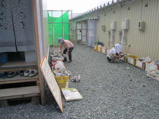 越前焼の入ったコンテナを並べた後、私は復興街作りイベントに向かいます。