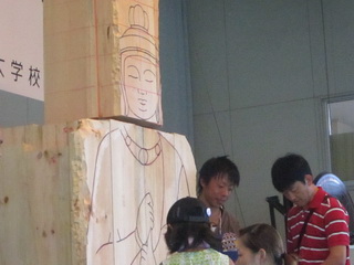 高田松原松で作成している仏像にノミを入れるイベントを行っています。