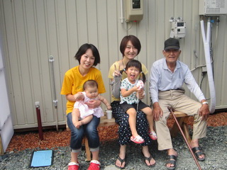 和野仮設住宅の皆さんに溶け込む服部さんです。
