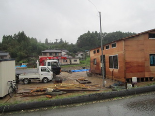 脇ノ沢のヤルキキャンプのボランティア宿泊所建設現場に行きます。