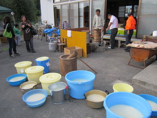地元の女性陣は中で、餅の準備。