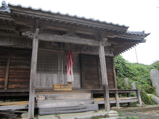 広田町根岸地区の鶴樹神社。梯子虎舞の元祖です。下が港ですが、まだ重機が入って瓦礫撤去しています。