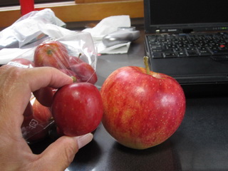 アルプス乙女は、リンゴ飴に使用されるような小さなリンゴ(直径3センチぐらい)ですが、意外と美味しいです。