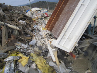 軽トラダンプに積んだ石膏ボードを集積場に持ち込みます。