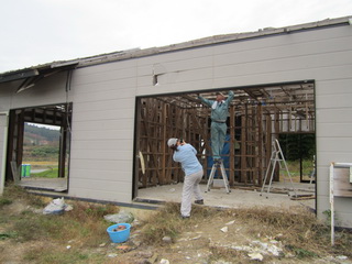 Kさんグループ。建物内の石膏ボード、断熱材は全て撤去しました。