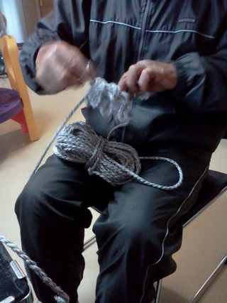 浮き玉に合わせてロープを編んでいきます。長年やっていないということで、思い出しながらです。