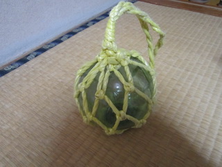 ガラス浮き玉に網をかけているものですが、今は使われていません。インテリアで使われています。