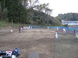 そうした状況の中、津波被害にあった畑をグラウンド代わりにしています。