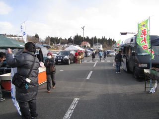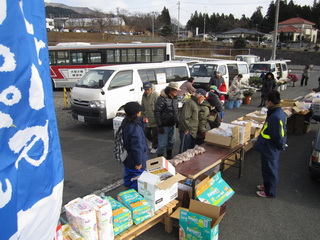 会場でお客さんに配る、午後からの軽トラ市で配る、明日以降、仮設住宅で配る、といったことをしていきます。