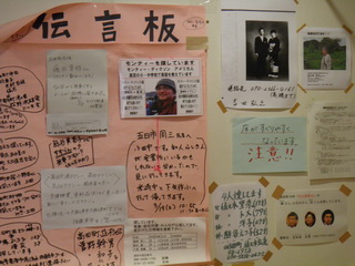 拠点作りに向けて 2011-03 2011.03.272011.03.21 3月21日に状況 朝、6時の風景 ガソリンスタンド前、多くの車が徹夜で並んでいます。 災害対策本部に設置された掲示板。安否確認情報がほとんどです。 被災地で活動拠点となる小学校の音楽室 ここは、陸前高田市のある地区の避難所であり、地区対策本部になっています。 活動拠点作りを進めている地区の状況 活動拠点のための宿泊施設として依頼しているお寺です。