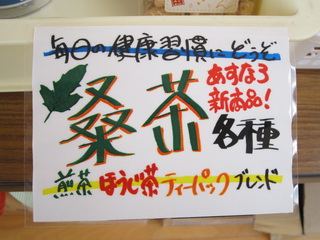 あすなろホームの桑茶POPです。採れたてランド用です。