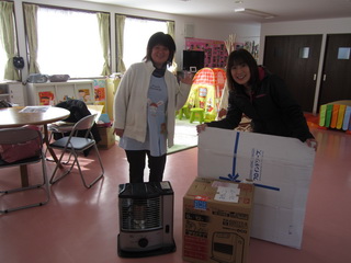 ファンヒーターと、私が部屋で使っている反射式ストーブを持って行きました。