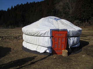 モンゴルのゲルが作られたと聞いたので、見学です。