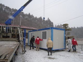 コンテナハウス設置の予定が、急遽餅つきボランティアに。
