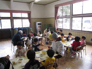 下矢作保育園の子どもたちに、福井から届けられた、越前和紙で作った雛人形をわたしました。