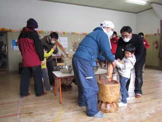 コンテナハウス設置祝いではないでしょうが、コンテナハウスが届くまでの間、子どもたちと餅つき大会です。