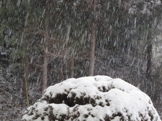 今朝は激しく雪が降っていました。しかし水分たっぷりの雪ですので、早く溶けます。