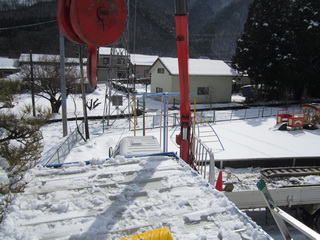 まず、コンテナハウスの上の雪かき。高いですし、滑りますし、怖いです。