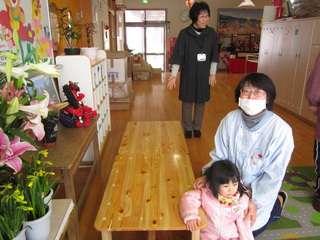子ども用テーブルを届けました。金さんが作りました。塗料は私と由香さん。