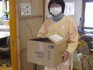 遠野まごころネットから受け取った子ども用マスクを届けに来ました。