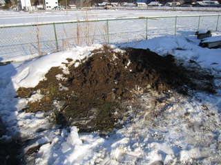 鈴木旅館の駐車場の土山。これを崩してプランターに入れます。この土山が無くなれば、車一台分のスペースができるのですが。