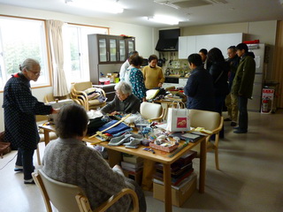 ここでは、仮設住宅に住む皆さんが(高齢者中心です)、裁縫や編み物をしています。