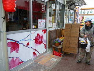 大船渡復興屋台村にもFさんのペイントが。椿を書いていたら、梅になったそうです。