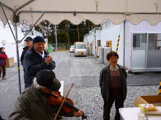 仮設住宅の方による、バイオリン演奏や歌も登場です。