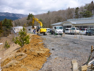 あすなろホーム前の駐車場工事が始まっています。AARさんの力が大きいです。