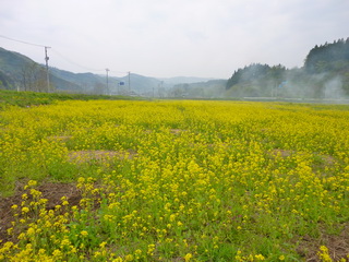 ヒマワリをまく予定の田んぼは、今は菜の花が一面に咲いています。