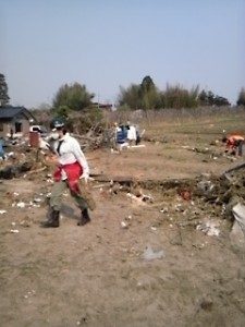 鈴木旅館さんの前の田んぼで瓦礫とゴミの撤去作業です。この作業は、朝出かけるときに、農作業をしていた方と話をしているときに依頼されたものです。依頼さらたというとりも、こちらから買って出た仕事です。