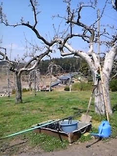 この農家の梨木も樹齢100年以上だそうです。りんごの木もかなり老木です。一部ですがりんごの木は伐採しなければならないです。無念です。