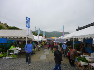 今日のけせん朝市。途中から雨になってしまいました。