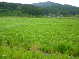 下矢作のひまわり畑です。遠くから見ると、草とひまわりがわからなくなってきました。