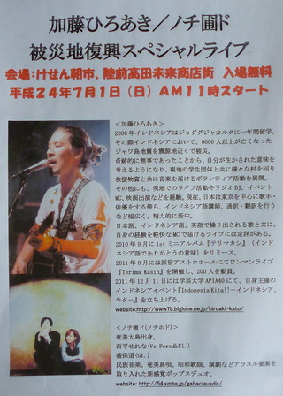 1日(日)は、加藤ひろあき・ノチ圃ドによるスペシャルライブ。