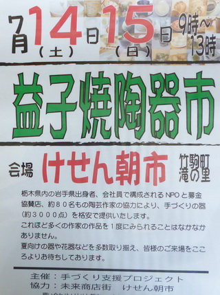 7月14日、15日に予定している、益子焼陶器市の開催についてです。