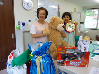 広島の井上さんグループから預かった、夕涼み会用景品を届けました。
