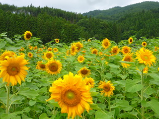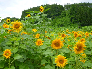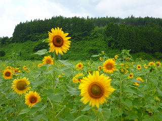 下矢作ヒマワリ畑で、M会長さんから説明を受け、作業開始です。