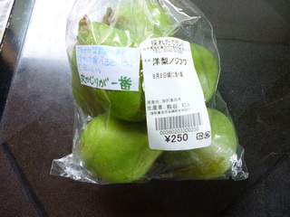洋なしが並んでいました。ジフワという品種です。昨年は食べなかったです。