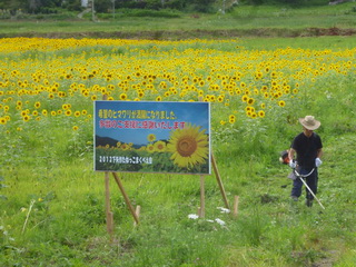 今日は被災地を回り、明日はヒマワリ畑で活動とのこと。