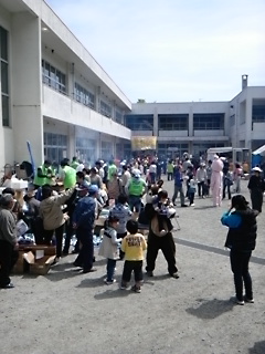 各避難所には鯉のぼりがなびいています。あちこちで、こどもの日のイベントが行われたようです。