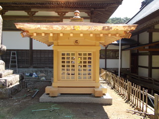 今日は、親子地蔵堂が完成し、足場を外す作業です。