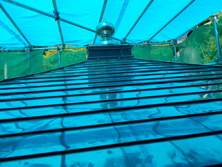 外した単管をかたづけていきますが、完成したお堂にあたりそうに。